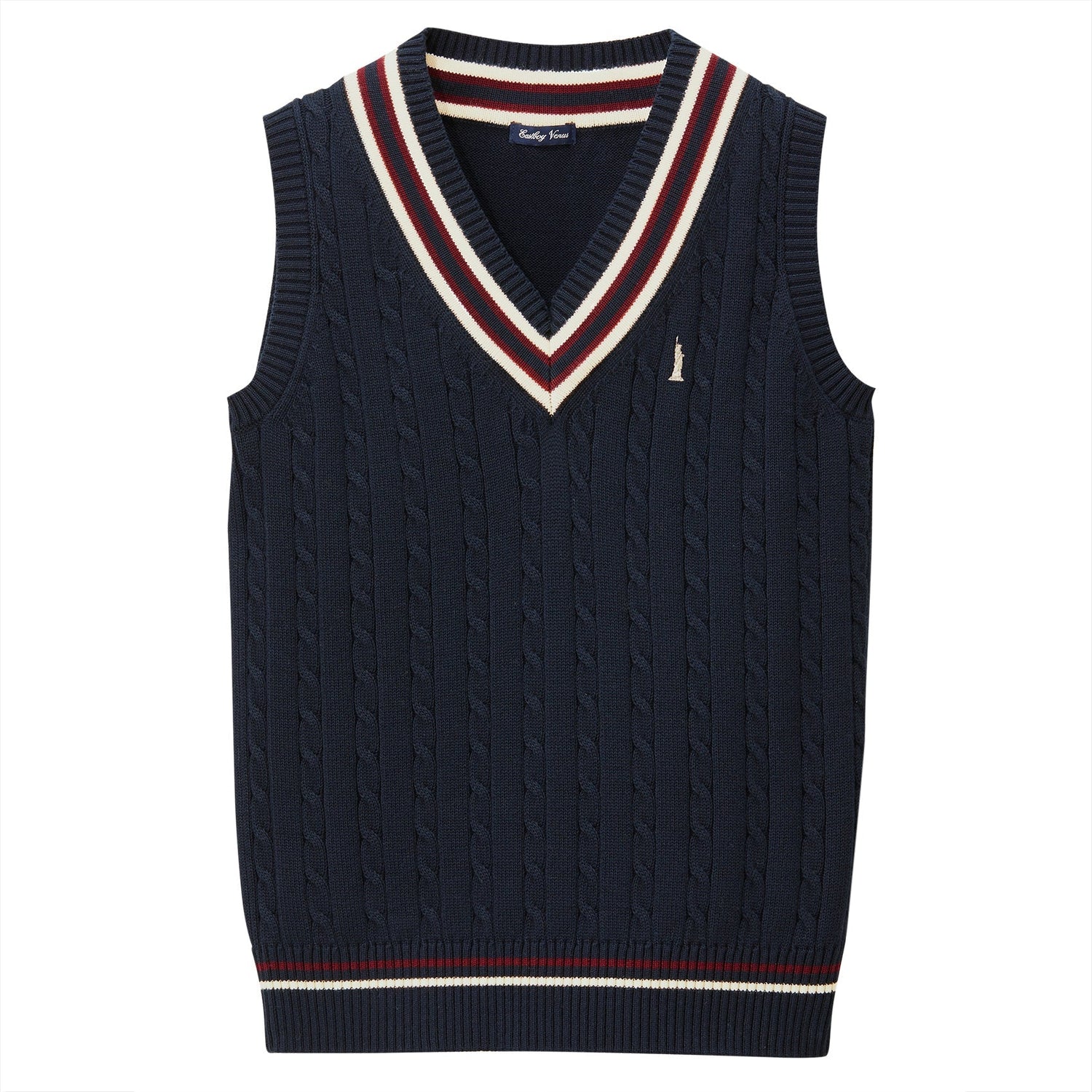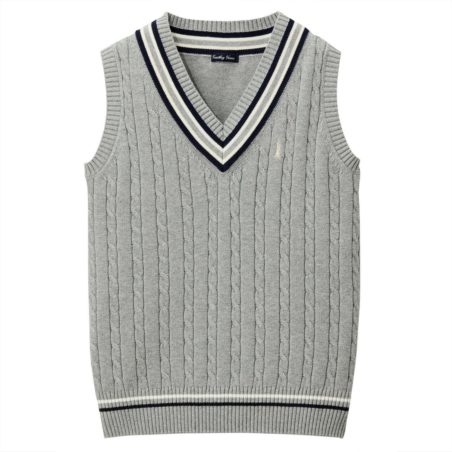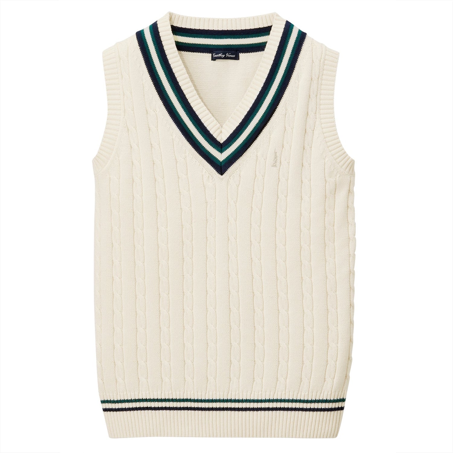 ・ケーブル編みにラインを配した、大人っぽい印象のトラッドなベスト。